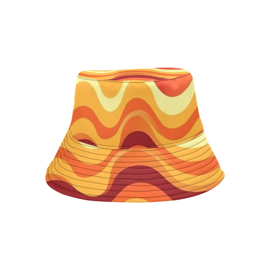 Retro Orange Bucket Hat, Groovy Wavy Psychedelic Vintage 70s Summer Festival Cute Women Men Designer Beach Sun Shade Y2K Twill Cool