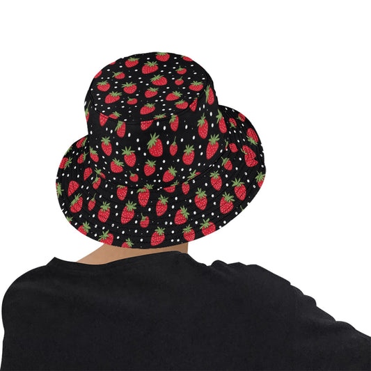 Strawberry Bucket Hat, Red Black Fruit Golf Cool Retro Vintage Summer Festival Cute Women Men Reversible Designer Beach Sun Shade Ladies