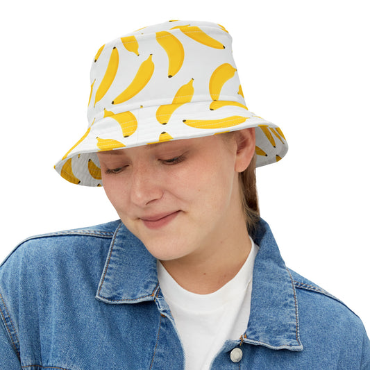 Banana Bucket Cap Hat, White Beach Cool Women Men Golf Retro Vintage Festival Cute Sun Shade Ladies Small Large Golf Guys