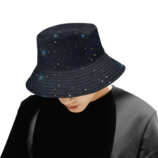 Galaxy Bucket Hat, Constellation Space Stars Cosmic Retro Vintage Summer Festival Cute Women Men Adults Designer Beach Sun Shade Twill