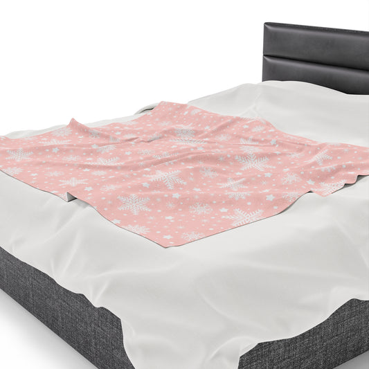 Pink Snowflake Fleece Throw Blanket, Christmas Xmas Velveteen Soft Plush Fluffy Cozy Warm Adult Kids Small Large Sofa Bed Décor