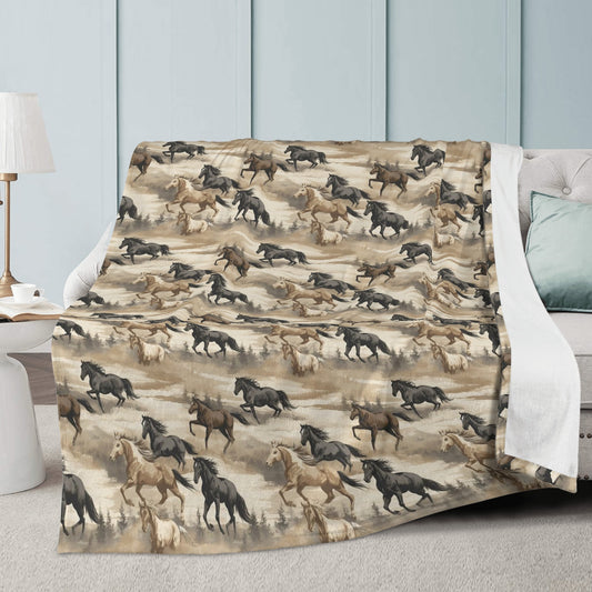 Vintage Horse Fleece Throw Blanket, Equestrian Western Soft Plush Fluffy Cozy Warm Adult Kids Small Large Sofa Bed Decor 50x60 Decorative