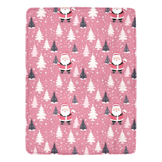 Pink Christmas Trees Fleece Throw Blanket, Santa Claus Xmas Soft Plush Fluffy Cozy Warm Adult Kids Small Large Sofa Bed 50x60 Decorative