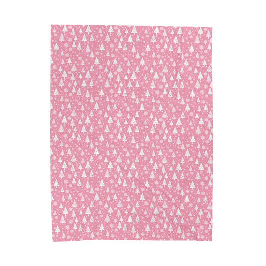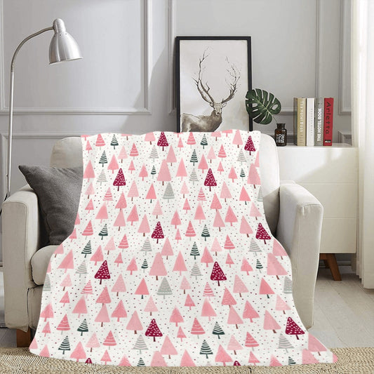 Pink Christmas Fleece Throw Blanket, Trees Snowflakes Velveteen Soft Plush Fluffy Cozy Warm Adult Kids Small Large Sofa Bed Décor