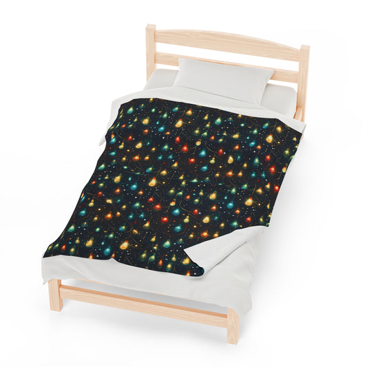 Christmas Lights Fleece Throw Blanket, Xmas Holiday Velveteen Soft Fluffy Cozy Warm Adult Kids Small Large Sofa Bed 50x60 Decorative