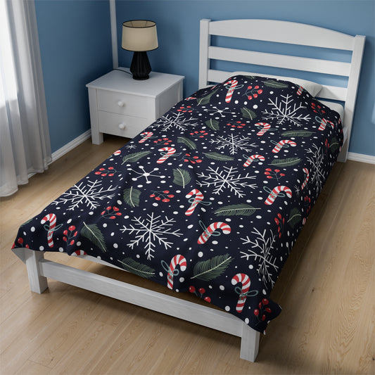 Christmas Fleece Throw Blanket, Candy Cane Snowflakes Velveteen Soft Plush Fluffy Cozy Warm Adult Kids Small Large Sofa Bed Décor