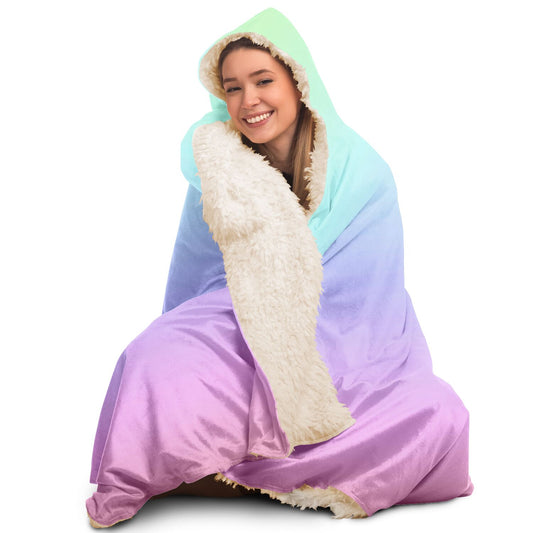 Rainbow Ombre Hooded Blanket, Pastel Tie Dye Pink Gradient Sherpa Fleece Soft Fluffy Cozy Warm Adult Men Women Kids Large Wearable Hood
