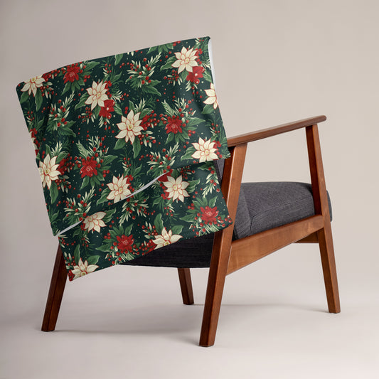 Christmas Berries Fleece Throw Blanket, Xmas Green Vintage Retro Floral Soft Cozy Warm Adult Kids Small Large Sofa Bed Decor 50x60