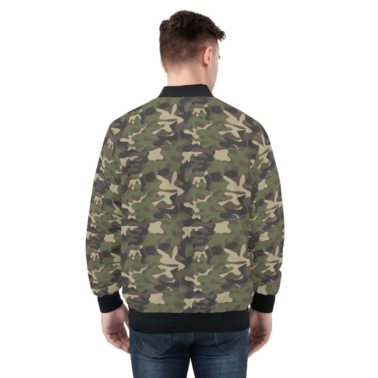 Camo Men Bomber Jacket, Green Camouflage Army Streetwear Unisex Winter Vintage Varsity Warm Designer Coat Outfit Plus Size