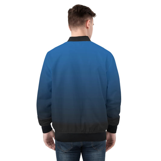 Blue Ombre Men Bomber Jacket, Black Gradient Tie Dye Zip Up Streetwear Male Winter Vintage Flight Varsity Warm Designer Coat Plus Size