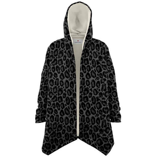 Black Leopard Hooded Cloak Cape, Animal Cheetah Print Coat Men Women Male Ladies Fleece Hooded Winter Warm Mink Wearable Blanket Festival