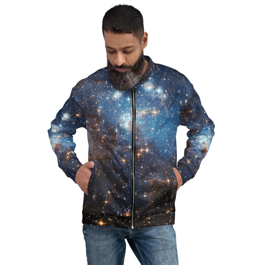 Galaxy Space Men Bomber Jacket, Universe Zip Up Streetwear Unisex Winter Vintage Flight Varsity Warm Designer Coat Outfit