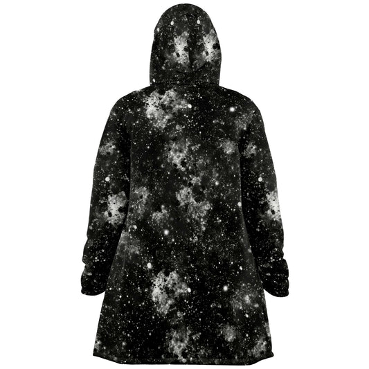 Black Galaxy Hooded Cloak, Space Universe Dark Matter Men Women Winter Warm Mink Blanket Festival Rave Wearable Cape Pockets
