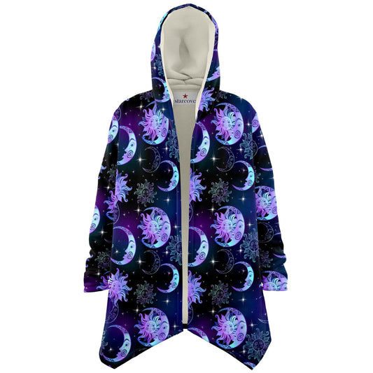 Sun Moon Hooded Cloak, Stars Purple Celestial Space Men Women Modern Winter Warm Mink Blanket with Pockets