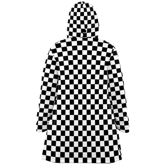 Checkered Hooded Cloak, Black White Check Men Women Modern Winter Warm Mink Blanket Festival Rave Wearable Cape with Pockets