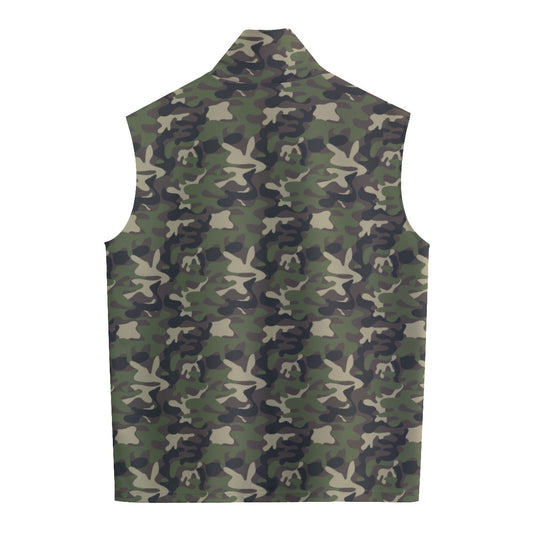 Camo Men Vest Stand-up Collar, Green Camouflage Army Guys Menswear Sweater Golf Casual Travel Light Lightweight Designer Zipper