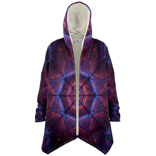 Mandala Hooded Cloak, Space Cosmic Purple Men Women Modern Winter Warm Mink Blanket Festival Rave Wearable Cape with Pockets