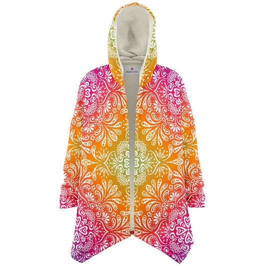 Mandala Hooded Cloak, Ombre Trippy Funky Men Women Modern Winter Warm Mink Blanket Festival Rave Wearable Cape with Pockets