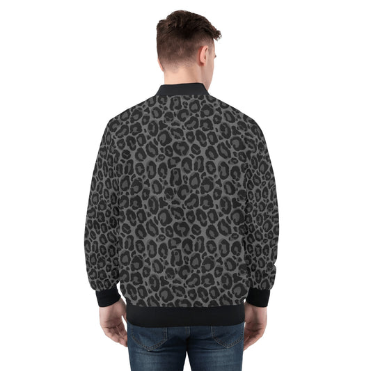 Black Leopard Men Bomber Jacket, Grey Animal Cheetah Print Zip Up Streetwear Male Winter Vintage Flight Varsity Designer Coat Plus Size