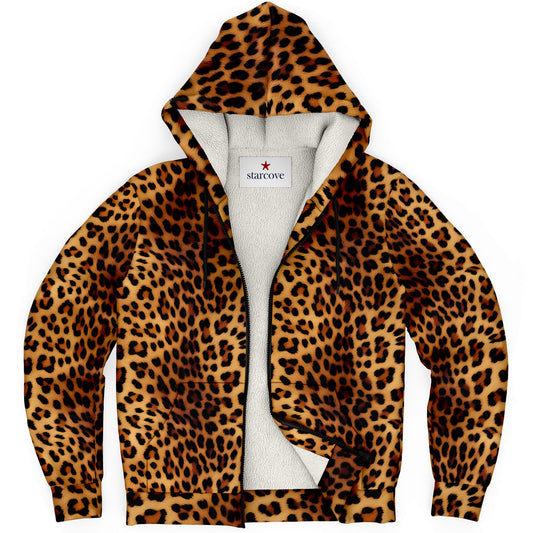 Leopard Zip Up Fleece Lined Hoodie, Animal Print Cheetah Full Zipper Pocket Men Women Unisex Adult Aesthetic Graphic Hooded Sweatshirt