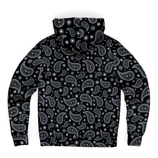 Black Paisley Zip Up Fleece Lined Hoodie, Bandana Heavyweight Full Zipper Pocket Men Women Unisex Aesthetic Hooded Sweatshirt Jacket