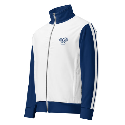 Tennis Track Jacket, Navy Blue White Men Women Vintage Retro Rackets Stripe Zip Up Tracksuit Ladies Jogging Windbreaker Fleece Winter Wear