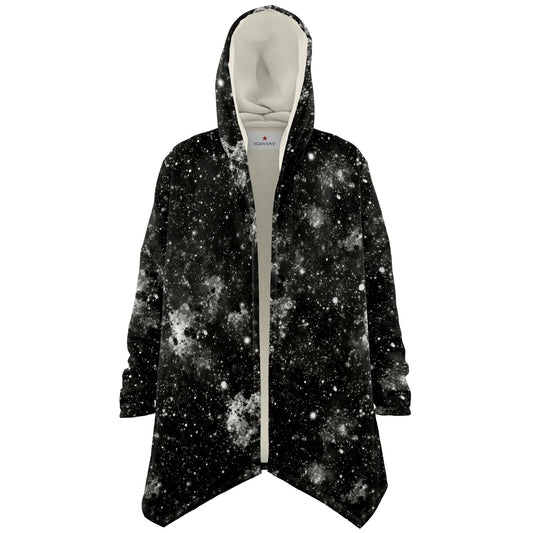 Black Galaxy Hooded Cloak, Space Universe Dark Matter Men Women Winter Warm Mink Blanket Festival Rave Wearable Cape Pockets