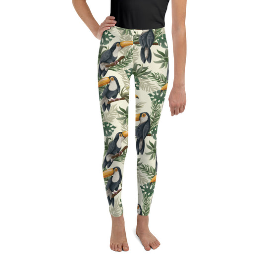 Tropical Toucan Girls Leggings (8-20), Green Bird Youth Teen Cute Printed Kids Yoga Tween Pants Graphic Fun Tights Gift Daughter