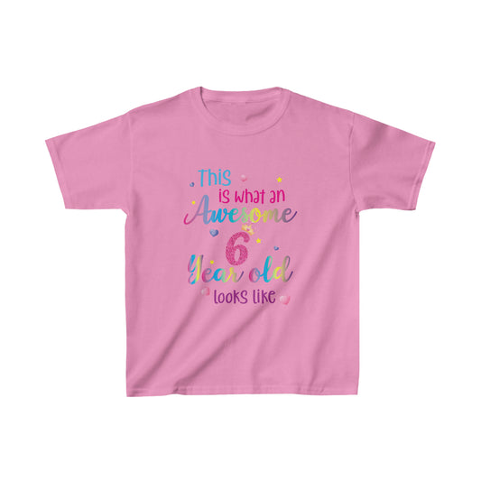 This is What an Awesome 6 Year Old Looks Like Girls Shirt, Birthday 6th Sixth Year Fun Rainbow Party Gift Kids Crewneck Tee