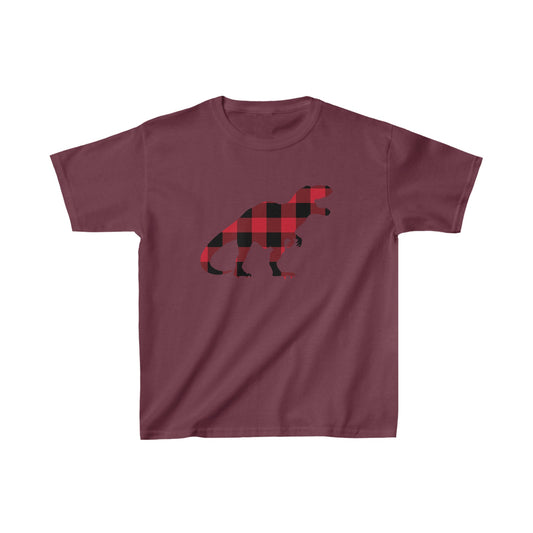 Trex Dino Kids Tshirt, Red Buffalo Plaid Check Dinosaur Boys Girls Youth Aesthetic Graphic Crewneck Tee Shirt Top