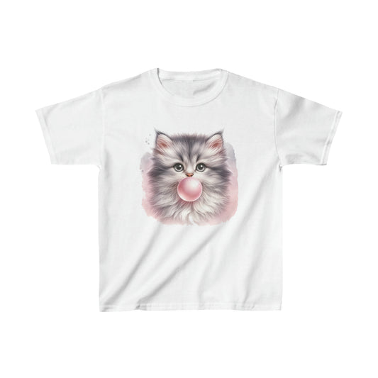 Cute Cat Kids Tshirt, Kitten Pink Bubble Gum Funny Animals Boys Girls Youth Aesthetic Graphic Crewneck Tee Shirt Top