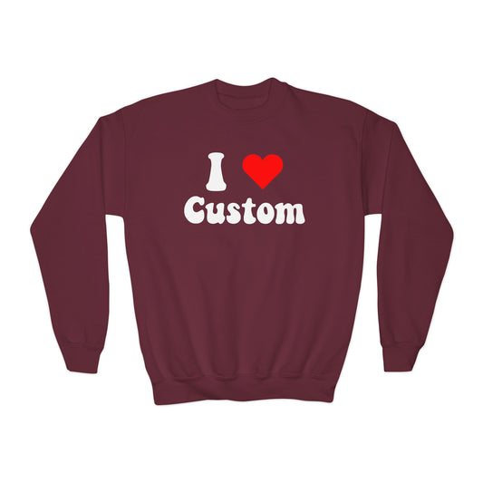 I Love Custom Kids Sweatshirt, I Heart Pullover Personalized Design Printed Boys Girls Gift Graphic Cotton Crewneck Pullover Top