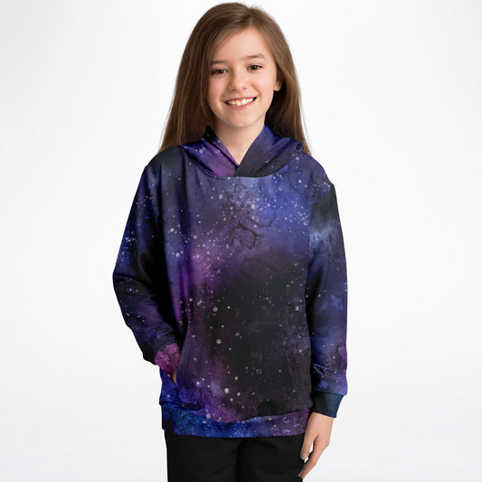 Galaxy Space Kids Pullover Hoodie, Purple Stars Universe Girls Boy Toddler Youth Fleece Aesthetic Cotton Graphic Hooded Sweatshirt Pockets