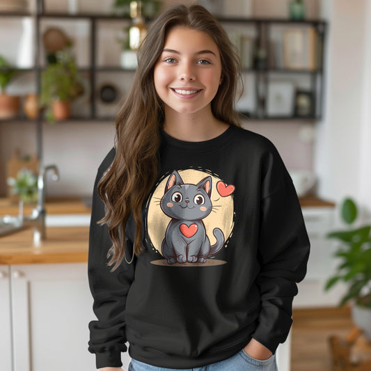 Cat Kids Sweatshirt, Kitten Heart Animal Lover Pullover Personalized Design Printed Boys Girls Gift Graphic Cotton Crewneck Pullover Top
