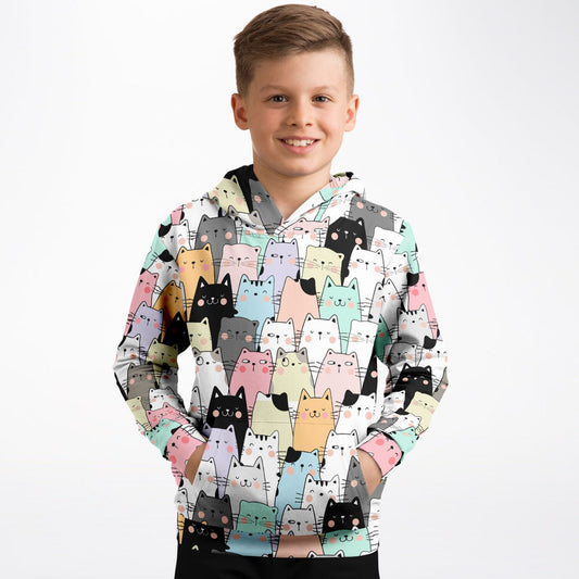 Cats Kids Pullover Hoodie, Cute Kittens Girls Boy Toddler Youth Children Fleece Aesthetic Graphic Cotton Hooded Sweatshirt with Pockets