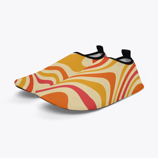 Groovy Water Shoes, Orange Retro 70s Aqua Quick Dry Waterproof Swim Pool Slippers Yoga Beach Summer Slip On River Boat Men Women Kids