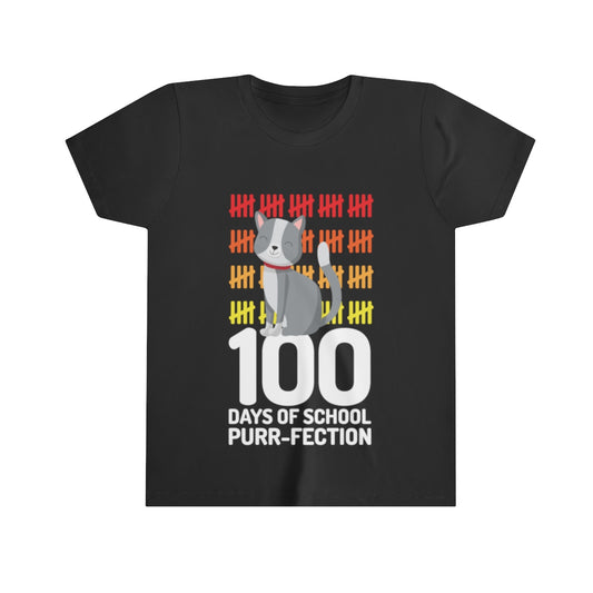 Happy 100 Days Of School Kids Shirt, Cat Purrfection Perfection Funny Teacher Kindergarten Elementary Students Girls Boys Kids Gift Kids Tee
