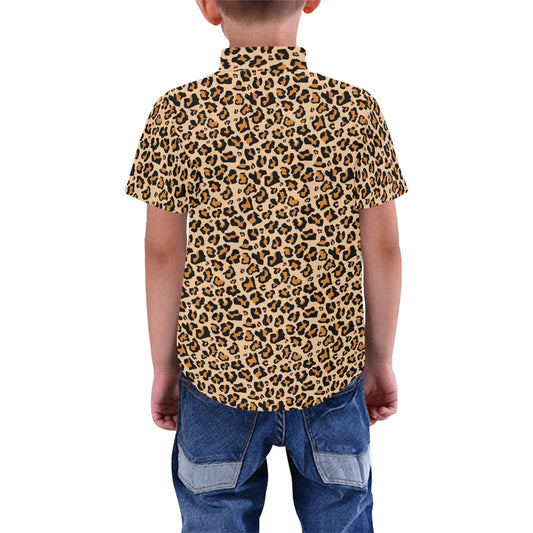 Leopard Boys Button Up Shirt, Animal Cheetah Print Kids Dress Buttoned Collar Dress Shirt with Chest Pocket Short Sleeve