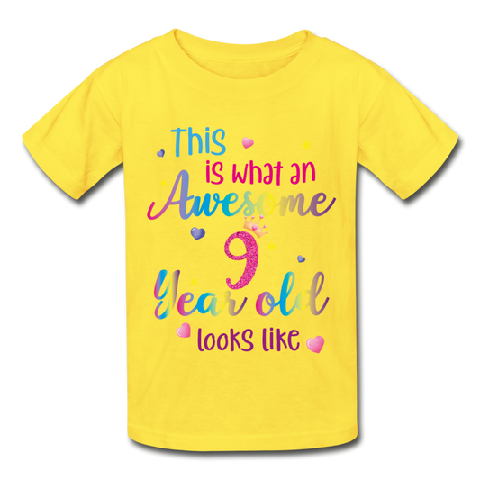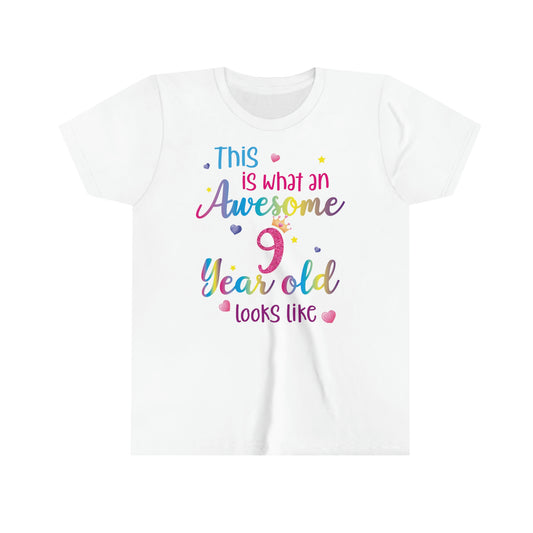 This is What an Awesome 9 Year Old Looks Like Kids Shirt, Birthday 9th Nine Year Fun Rainbow Party Gift Kids Crewneck Girls YouthTee