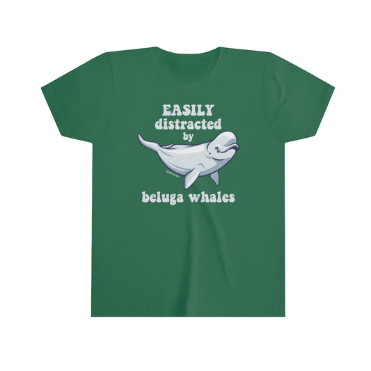 Beluga Whales Kids Tshirt, Easily Distracted by Beluga White Whale Funny Marine Animals Ocean Love Boys Girls Youth Shirt Gift