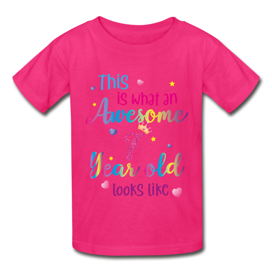 This is What an Awesome 7 Year Old Looks Like Kids Shirt, Birthday 7th Seven Year Fun Rainbow Party Gift Kids Crewneck Girls Classic Tee