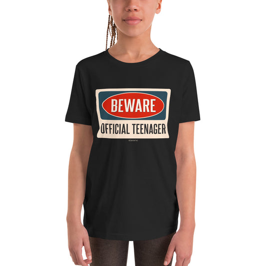 Beware Official Teenager Youth Tshirt, Warning 13 Year Old 13th Birthday Party Funny Caution Teenage Boys Girls Kids Shirt Gift