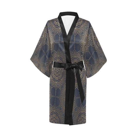 Mandala Print Kimono, Oriental Bohemian Boho Japanese Women's Short Lounge Kimono Robe Sleepwear Bathrobe