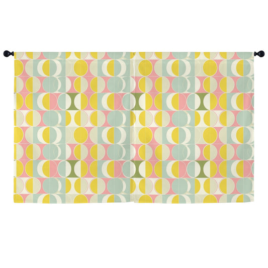 Mid Century Modern Window Curtain, Yellow Geometric 60s 70s Kitchen Living Room Bedroom Bathroom Patterned Fabric Rod Pocket Decor Home