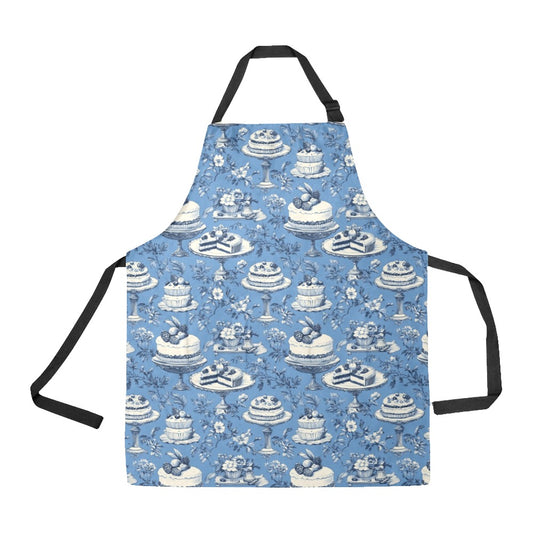 Baking Toile Apron for Women with Pockets, Desserts Blue Vintage Retro Chef Cute Cooking Ladies Men Kitchen Adjustable Straps Designer