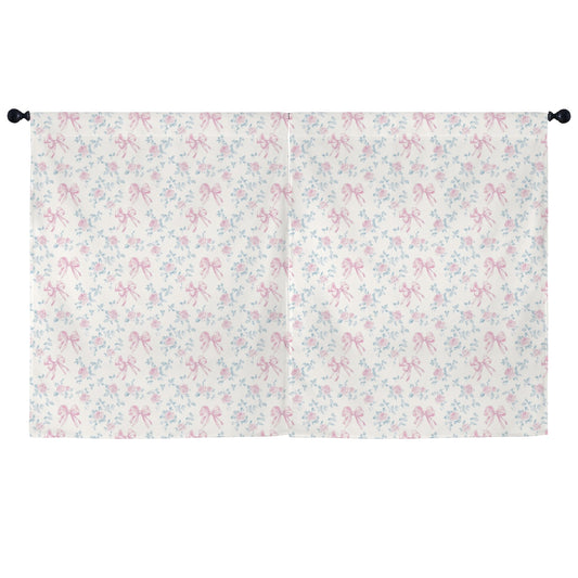 Pink Bows White Floral Modern Window Curtain, Flowers Coquette Kitchen Living Room Bedroom Bathroom Fabric Unique Rod Pocket Decor Home