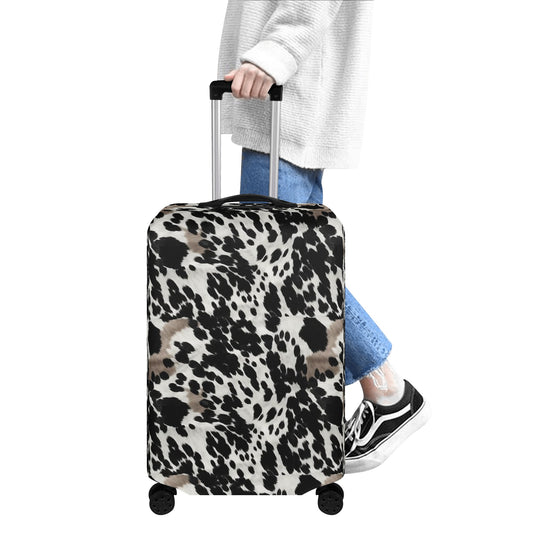 Cow Print Luggage Cover, Black White Brown Animal Suitcase Protector Hard Carry On Bag Washable Wrap Large Small Travel Aesthetic Gift