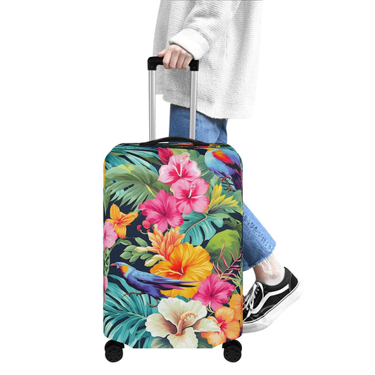 Tropical Flowers Luggage Cover, Pink Floral Bird Parrot Suitcase Protector Hard Carry On Bag Washable Wrap Large Small Travel Aesthetic