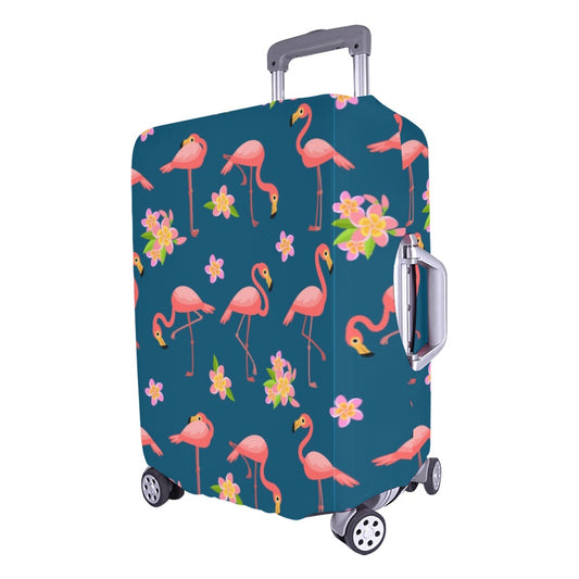 Flamingo Luggage Cover, Flowers Pink Tropical Blue Aesthetic Print Suitcase Carry On Bag Washable Protector Travel Designer Zipper Gift