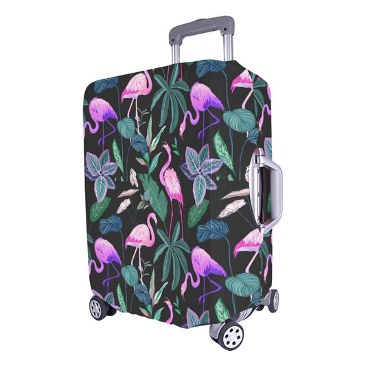 Flamingo Luggage Cover, Pink Purple Tropical Leaves Aesthetic Print Suitcase Carry On Bag Washable Protector Travel Designer Zipper Gift